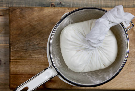 2. 거름망(면포)에 요거트를 붓고 위에 누름판을 올린 후 뚜껑을 닫아 냉장보관 한다.