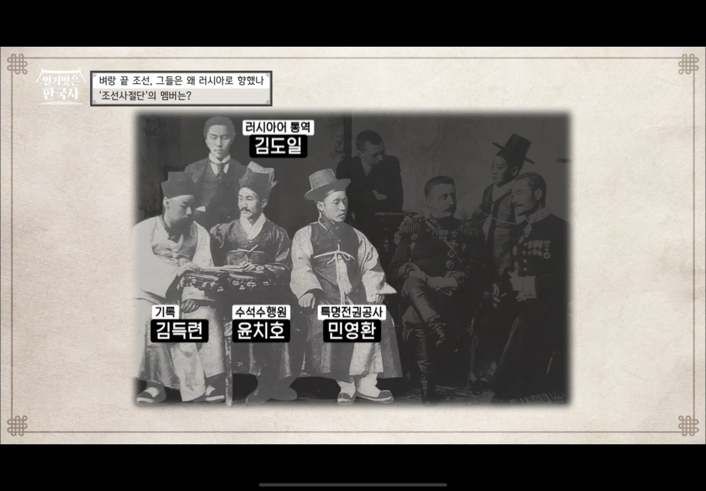조선 사절단을 이끌 수장은 민영환이었다. 민영환은 명성황후의 집안이자 고종의 외가 친척인 여흥 민씨 가문으로, 17살에 과거에 급제한 비상한 머리와 조정 진출 이후에도 초고속 승진을 하며 병조판서, 형조판서를 역임한 인재였다. 게다가 국제 정세도 밝은 민영환을 고종은 사절단에 적임이라 생각하여 특명전권공사 직함을 내리고 외교의 전권을 부여한다. 그렇게 민영환을 주축으로 한 외교 사절단은 수석수행원 윤치호, 기록 김득련, 러시아어 통역 김도일, 민영환 개인비서 손희영까지 5명으로 구성되었다. 민영환은 고종이 절박한 심정으로 써 내려간 문서를 러시아 황제에게 전달하고, 조선이 필요한 요구를 협상해야 하는 막중한 임무를 맡게 된다.